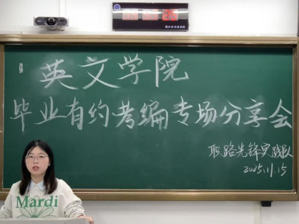 11月15日下午,来利国际旗舰厅“E+”圆桌派·毕业有约考编经验分享会在融A103圆满举行,公司2025届英语(师范)专业毕业生陶颖受邀分享,15名22级英语(师范)专业在读本科生参与。