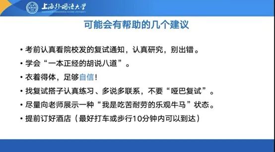 杜明慧结合自身跨城市、跨专业、零基础的“三跨”经历,分享了上岸上海外国语大学的匿名复试备考经验。她介绍了上外初试、复试五五占比的规则,强调专业课面试分值权重最高,需重点投入精力;英语口试中自信表达比完美语法更为重要,文科备考要紧跟时政热点、研读目标院校导师近年论文,还分享了临场敢说、提前规划行程、寻找复试搭子练习等实用技巧。
