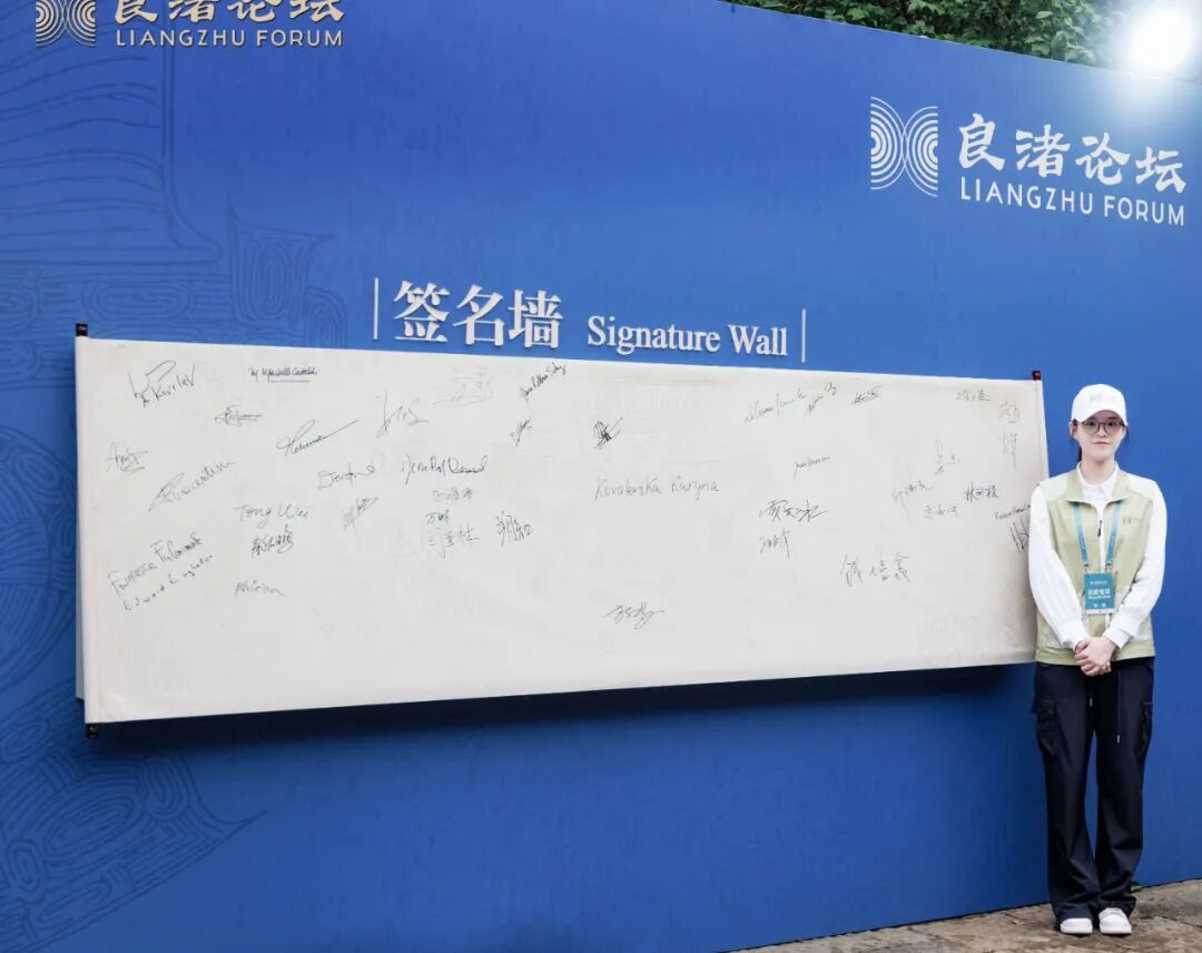 在第三届良渚论坛的会场内外,一抹抹“良渚绿”的身影穿梭在嘉宾人群之间,成为最温暖的风景线。他们中有连续两届坚守的“老志愿者”,有初次上阵的“新面孔”,也有首次以研究生身份参与的青年学子。从注册引导到协助翻译,从文艺活动现场到论坛接待,他们用微笑和行动诠释了“奉献、友爱、互助、进步”的志愿精神。